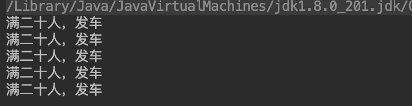 CyclicBarrier cyclicBarrier = new CyclicBarrier(20,()->System.out.println("满二十人,发车"));