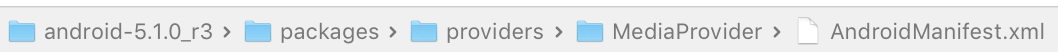 <provider android:name="MediaProvider" android:authorities="media" android:multiprocess="false" android:exported="true"> <grant-uri-permission android:pathPrefix="/external/" /> <path-permission android:pathPrefix="/external/" android:readPermission="android.permission.READ_EXTERNAL_STORAGE" android:writePermission="android.permission.WRITE_EXTERNAL_STORAGE" /> </provider>