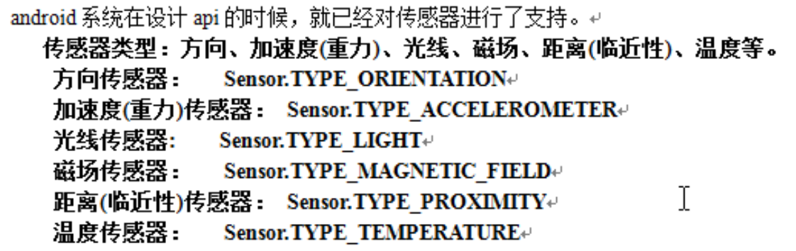 以前的时候,也是智能手机刚刚起步的年代,我买了个300多元的Android智能手机,那个时候我记得,接电话/打电话 手机碰到耳朵不会自动灭屏(这是因为没有距离传感器硬件),无法使用指南针🧭(这是因为没有方向传感器硬件),为什么会没有这些硬件呢:那是因为手机买的便宜,而这些传感器硬件是要花钱的,所以说传感器是由硬件来决定的,没有这个硬件,软件就搞不成。