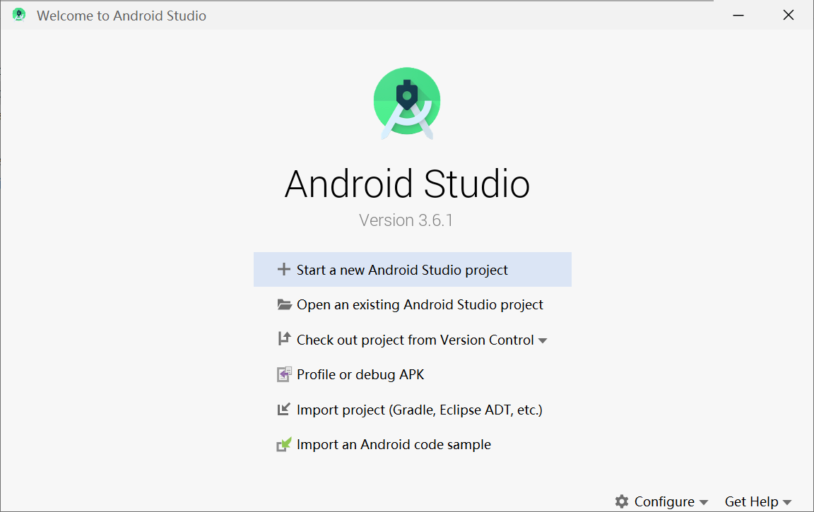 1、点击"Start a new Android Studio project"来新建项目