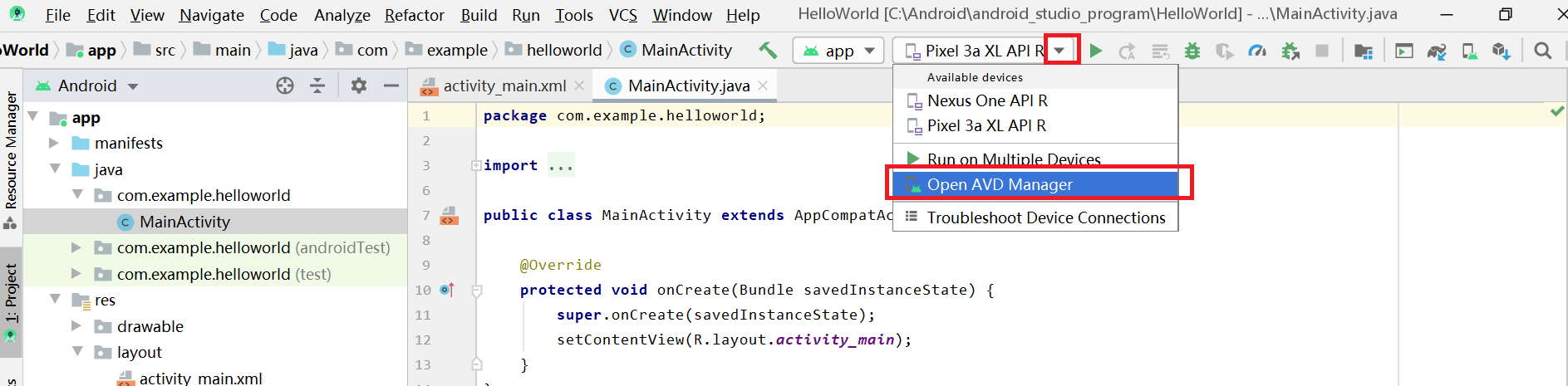 3、app/java/com.example.helloworl/MainActivity.java 【源程序文件】
