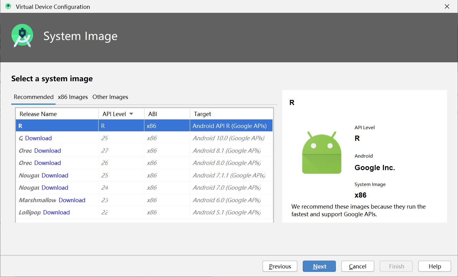 选择API Level 为R,点击next,点击finish