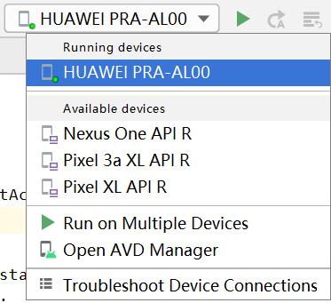 设备有两种,一种叫虚拟机(virtual device),另一种叫真机(即真正的设备,如手机、平板)