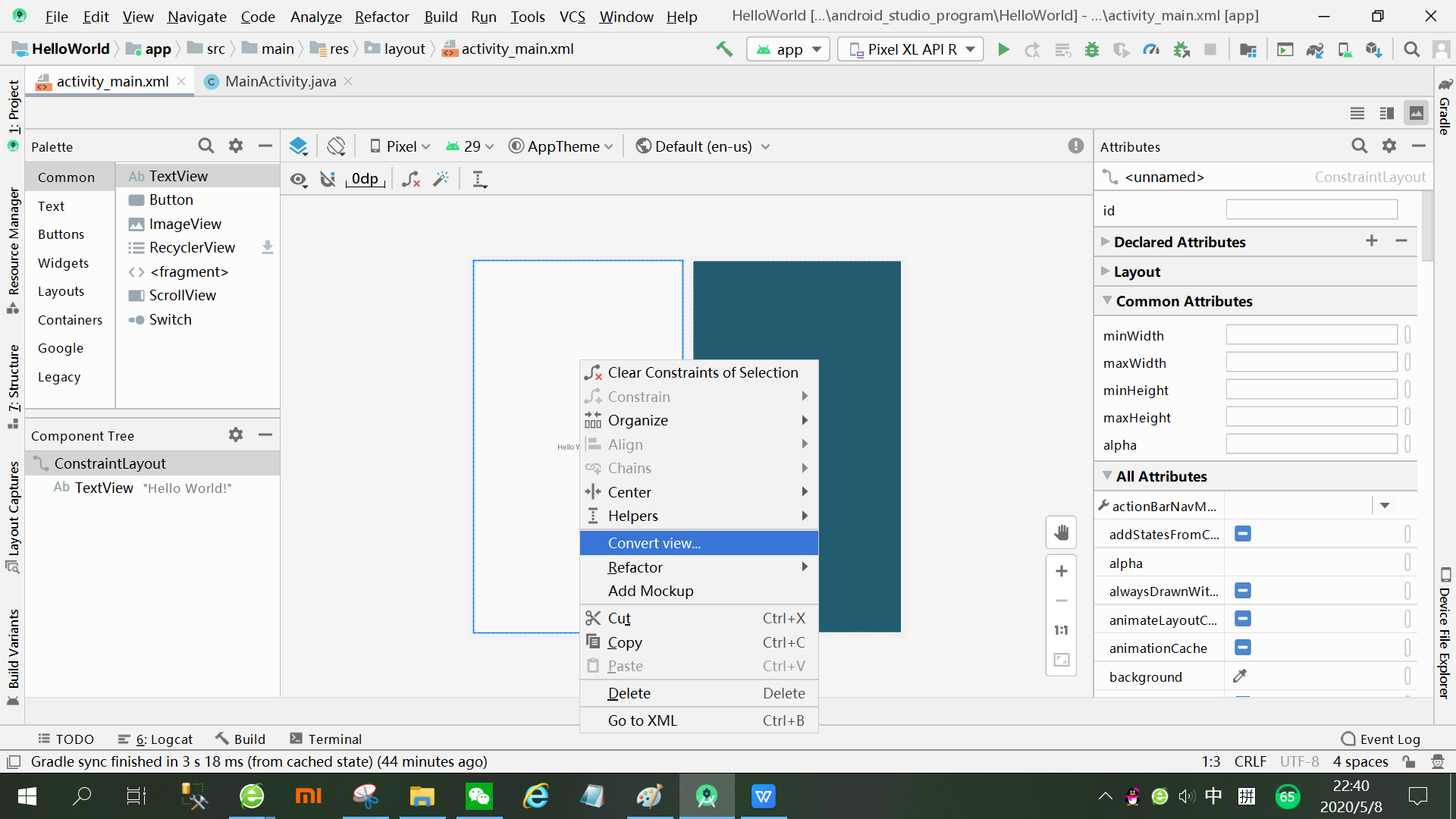 如图选中ConstraintLayout,单击鼠标右键-->Convert view..