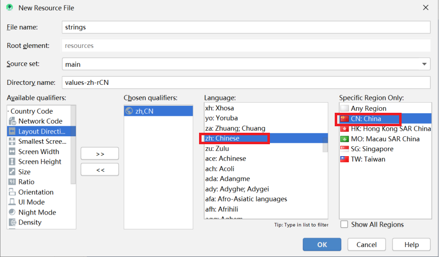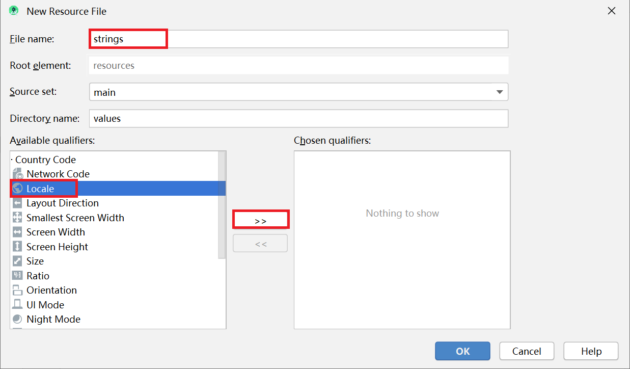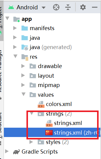 如图就会自动生成strings文件夹