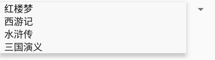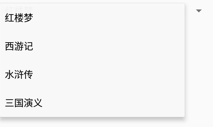 <string-array name="spinnerList"> <item>红楼梦</item> <item>西游记</item> <item>水浒传</item> <item>三国演义</item> </string-array>