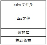odex在原来的dex文件头添加了一些数据,在文件尾部添加了程序运行时需要的依赖库和辅助数据,使得程序运行速度更快。