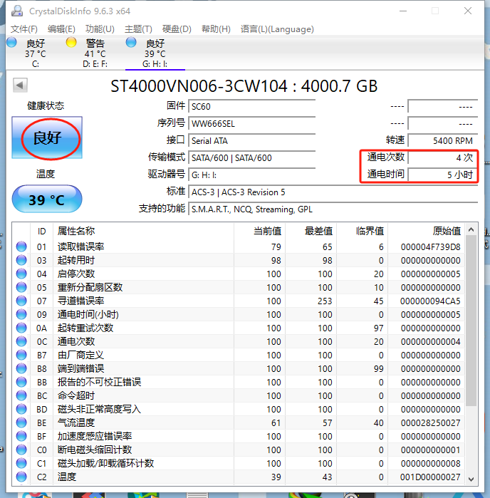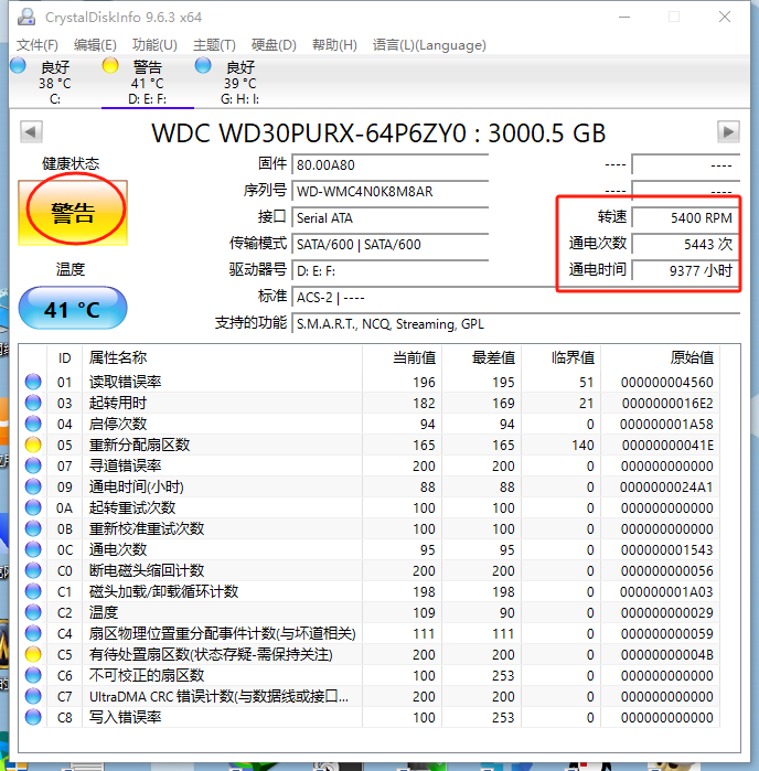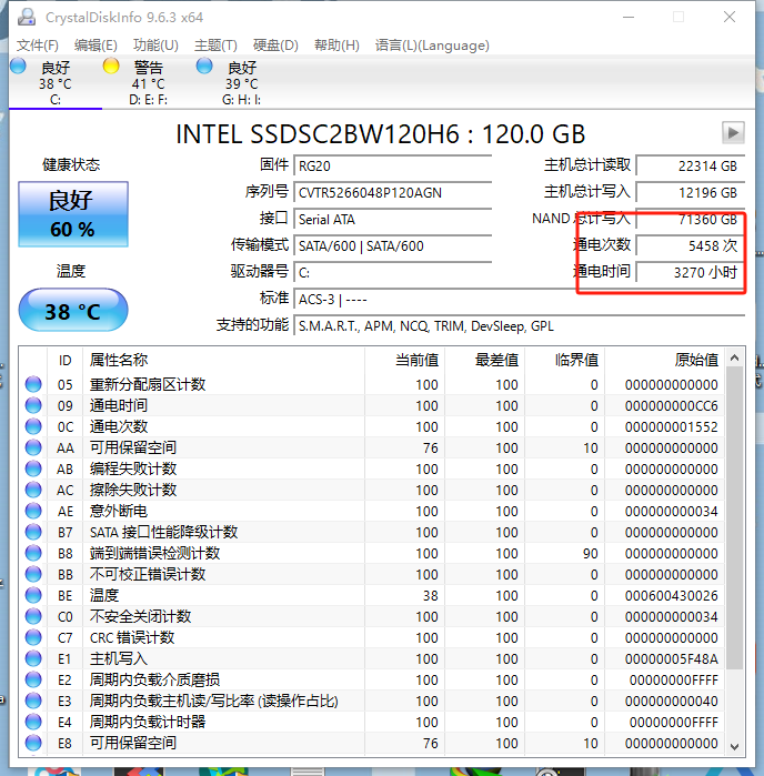 CrystalDiskInfo是更详细的硬盘健康信息建议使用专业工具