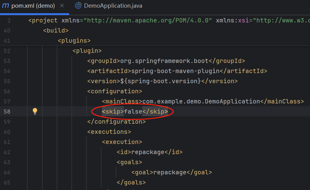 - 修改pom配置,这里改为false,否则jar包启动不了