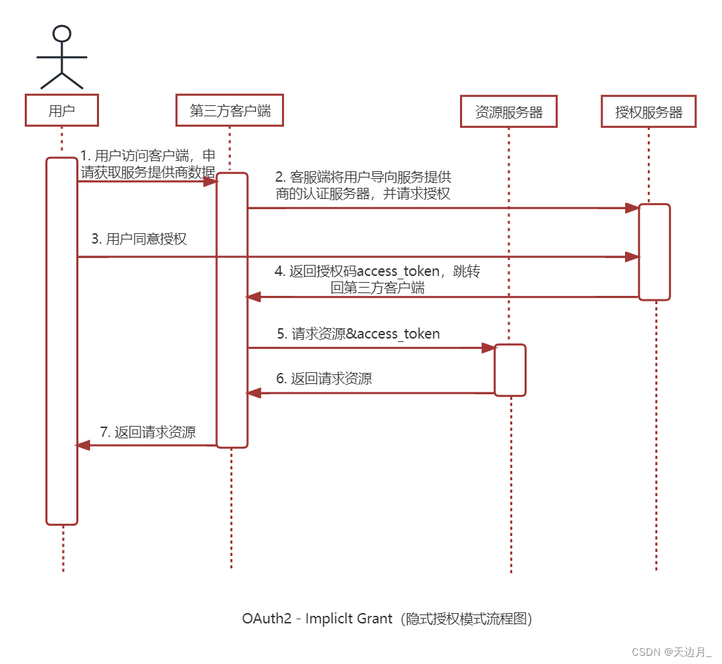 - 【步骤1,2】用户访问客户端,需要使用服务提供商的数据(用户信息),客户端通过重定向跳转到服务提供商的页面。