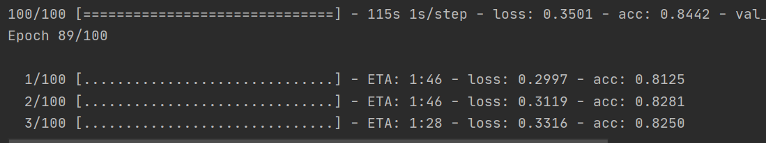 训练结束的精度和损失图示如下,精度80%左右,验证损失变化较大,还需要进一步查看原因: