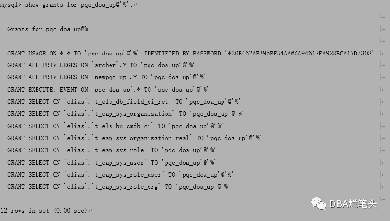 #怕权限可能遗漏,把提前备份的同名账号 pqc_doa_up@'172.26.154.%'备份的权限赋权给'pqc_doa_up'@'%'。(居然隐藏着一条 GRANT SELECT ON `mysql`.`help_topic` TO 'pqc_doa_up'@'172.26.154.%')
