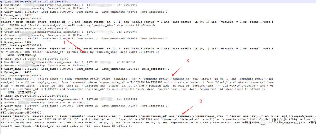 慢日志记录主要归为3个慢sql (编号1,2,3)