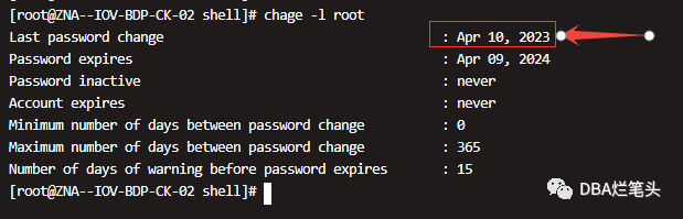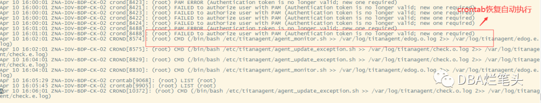 今天2023/4/10号,crontab最后运行时间为2023/3/30号,而我们自动建表任务提前建表的天数正好是10天,完全对得上。天坑,os root密码过期,导致主机crontab自动任务罢工