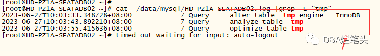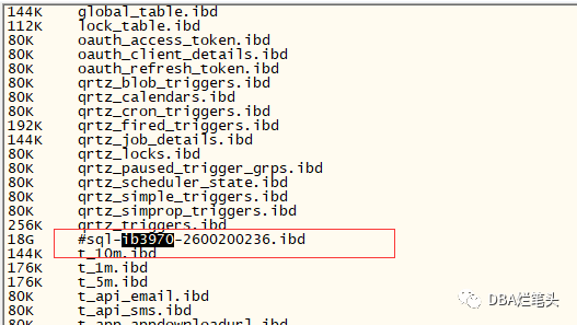 经分析发现DB存在一个当日的备份表t_eap_sys_navigation_log_bak_20230626 ,且在OS层面存在 命名异常的表文件(#开头),按照经验推断#开头为中间表,磁盘使用率告警恢复后,该中间表也不存在了。