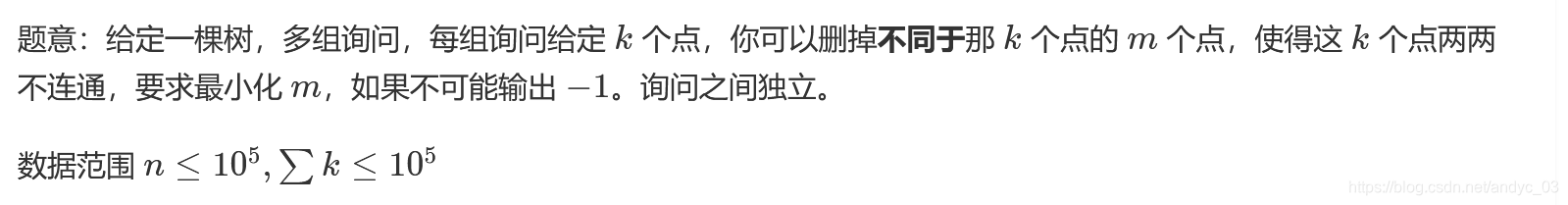 然后我们可以建立虚树,给指定的k个点设置点权为1(为了区分lca)