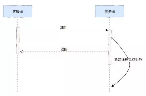 服务端接收到请求后,创建新的线程处理业务逻辑,服务端先回应答给客户端。