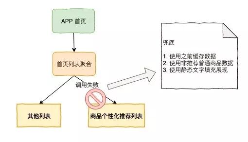 这时候可以选择获取之前没有失败接口的缓存数据,如果没有则可以获取通用商品不用个性化推荐,如果也没有可以读取一些静态文字进行展示。