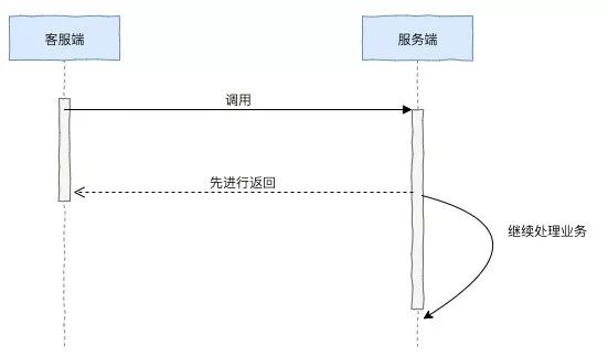 服务端接收到请求后,服务端先回应答给客户端,再继续处理业务逻辑。