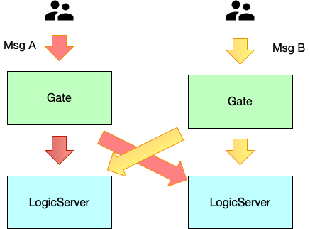 从上面可以看出,群聊消息乱序的原因在于:同一个群聊的消息,最后被分派到了两个不同的逻辑服务器上处理。