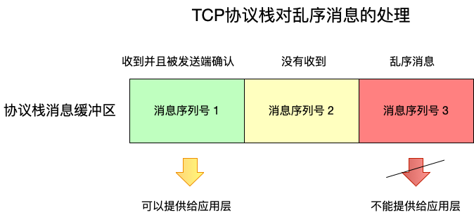 由于消息2没有接收到,因此消息3是乱序消息,不能提供给应用层。
