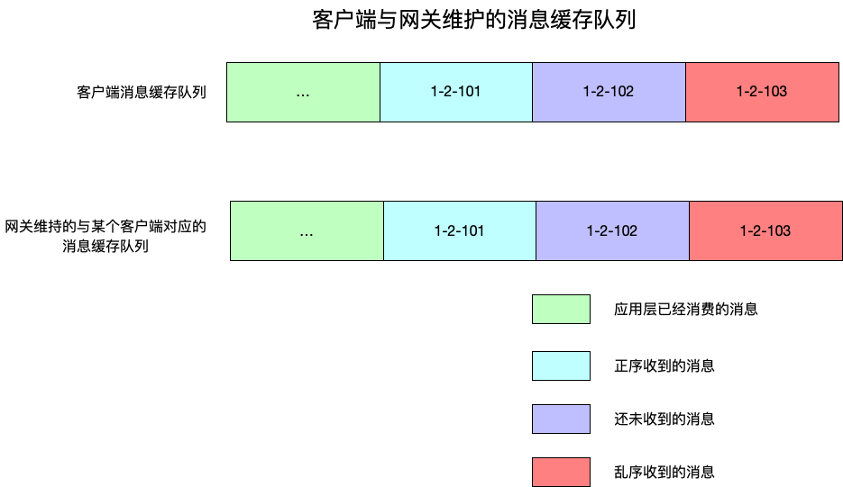 客户端内部,维持一个缓存消息的队列,每个消息都有对应的消息序列号,收到消息之后需要与网关进行确认,以此确认这条消息是否是按序接收的消息,只有这样的消息才能提供给应用层消费。