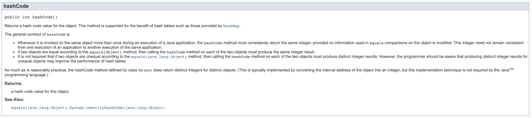 那至于 hashCode() 返回的究竟是什么,和本文关联不太大,有兴趣的同学可以看参考这篇文章[1],结论就是:
