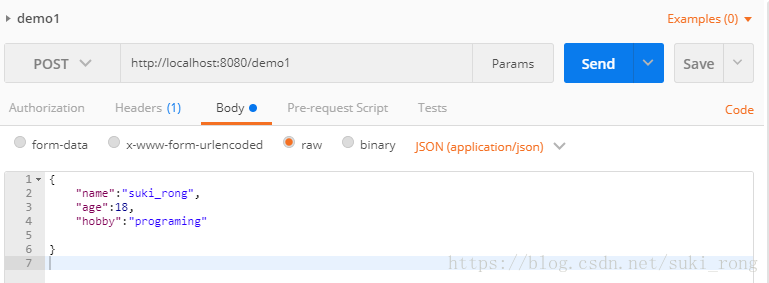 @PostMapping(path = "/demo1")public void demo1(@RequestBody Map<String, Object> person) { System.out.println(person.get("name"));} |