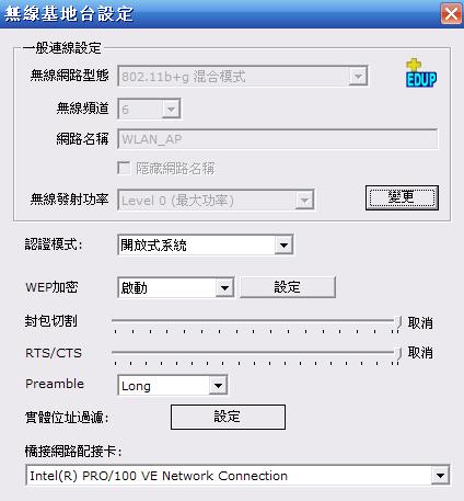 5、神卡设置程序中,选取无线基地台模式,即AP模式,设置一个wep密匙;
