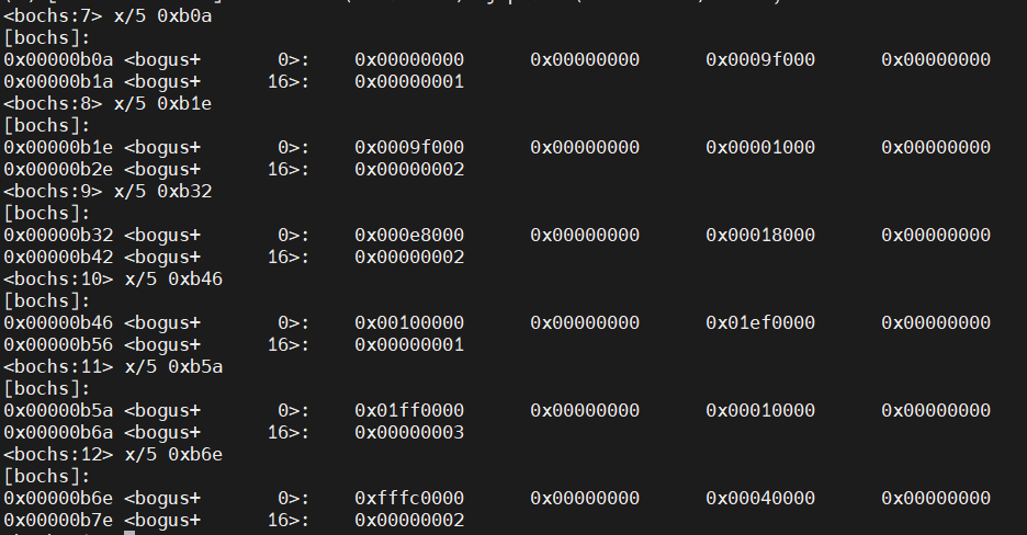表格里说的很清楚,CF位为0且返回后EBX为0时的结果为最后一个ARDS结构,否则就一直调用0x10来获取,其他的就不过多介绍了。