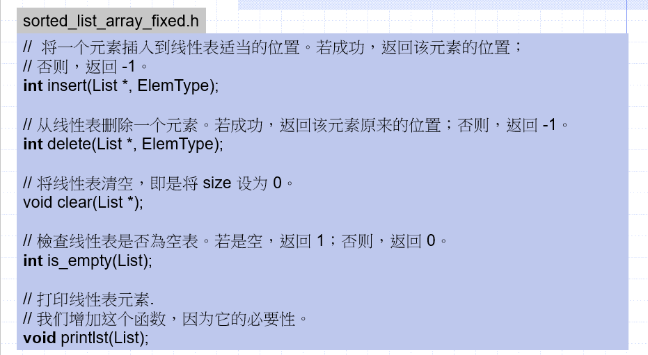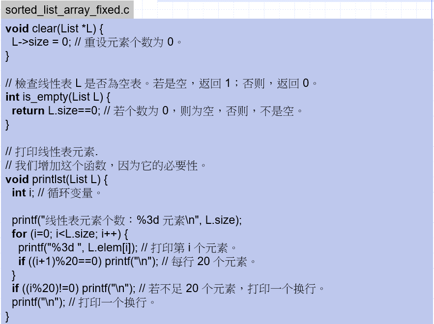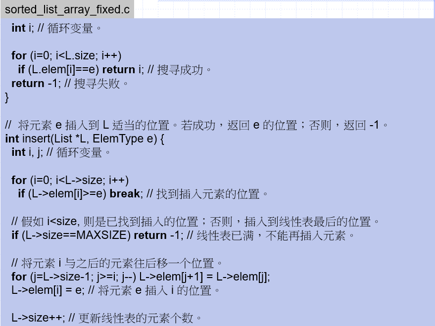 使用 C 程序语言的固定数组 (fixed-size array) 实现有序线性表。
