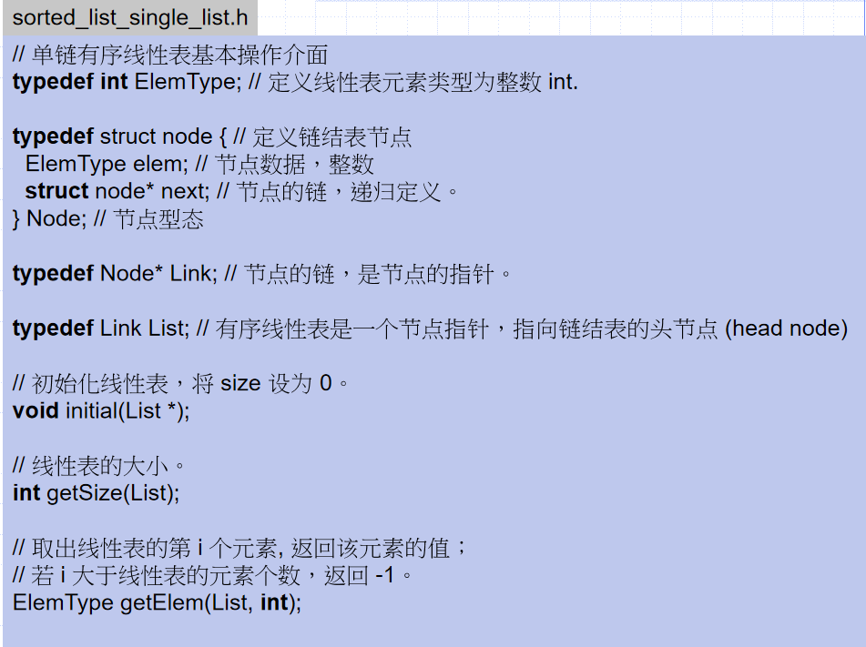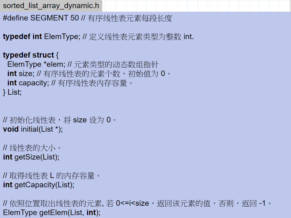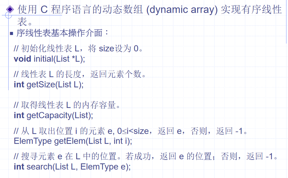 int getSize(List); // 取出线性表的第 i 个元素, 返回该元素的值;