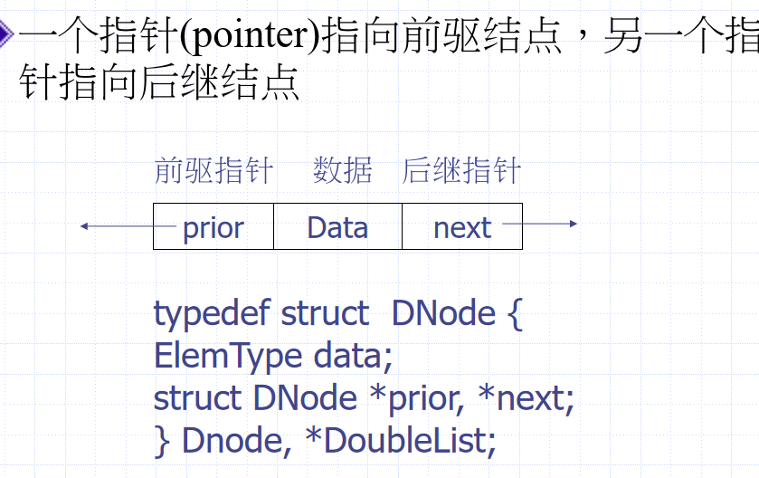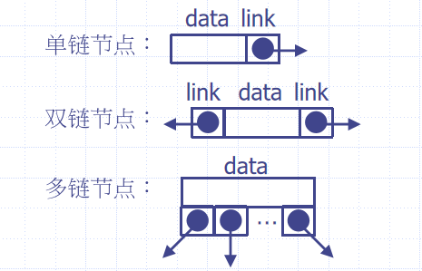 双链节点可用来设计双链线性表 (double-linked linear list)、循环双链线性表 (circular double-linked linear list)、和二叉树 (binary tree)。