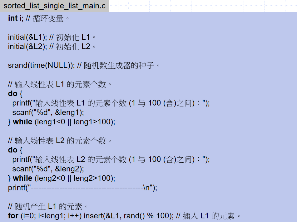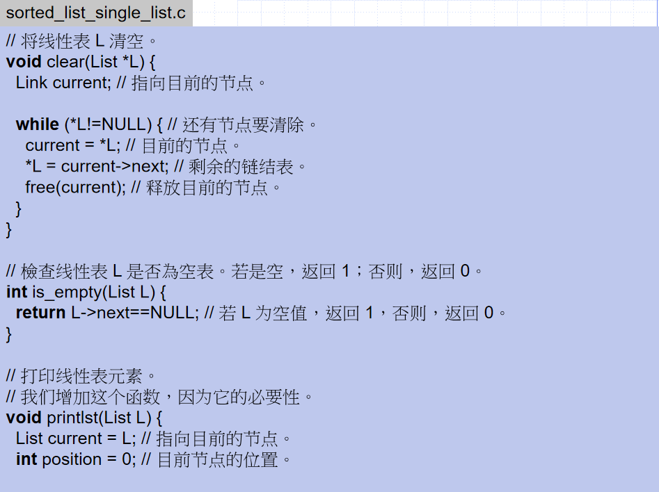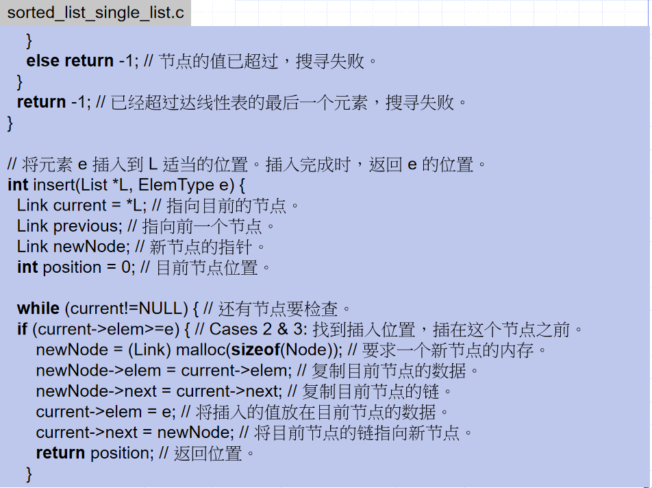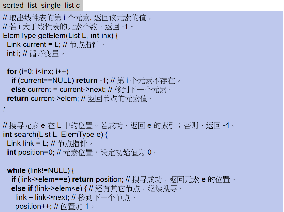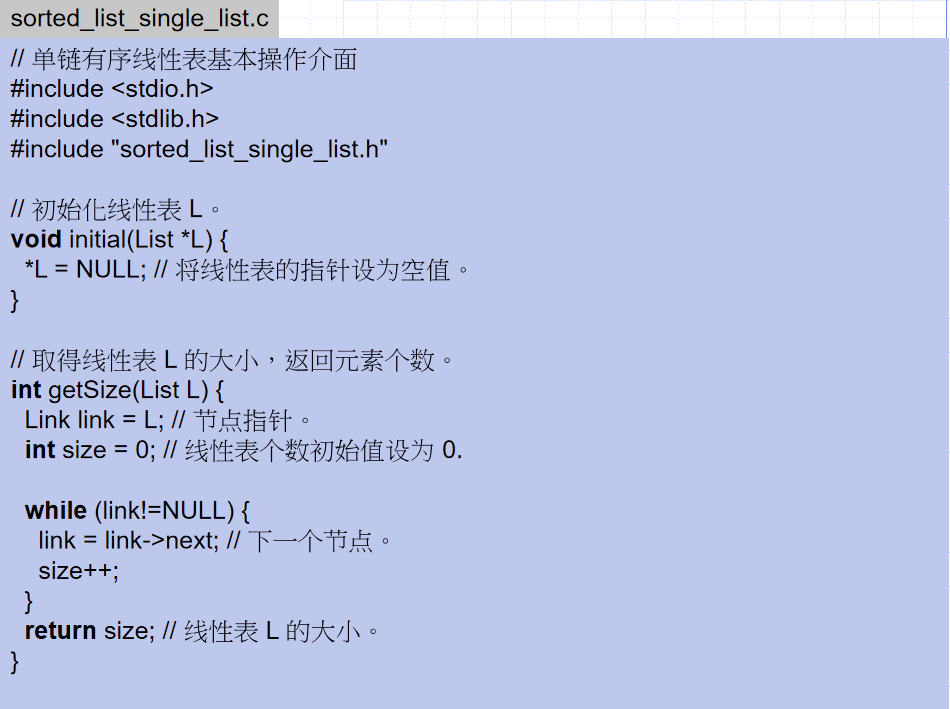 如果线性表任意两个互相连结的节点,节点1 指向节点2,且节点1的数据小于或等于节点2 的数据,亦即 a0a1a2…an-2an-1,则线性表是一个单链有序线性表 (single-linked ordered linear list)。