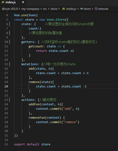 1.创建store.js文件(位置任意,一般放在要通信的组件的最外层,也可放全局)