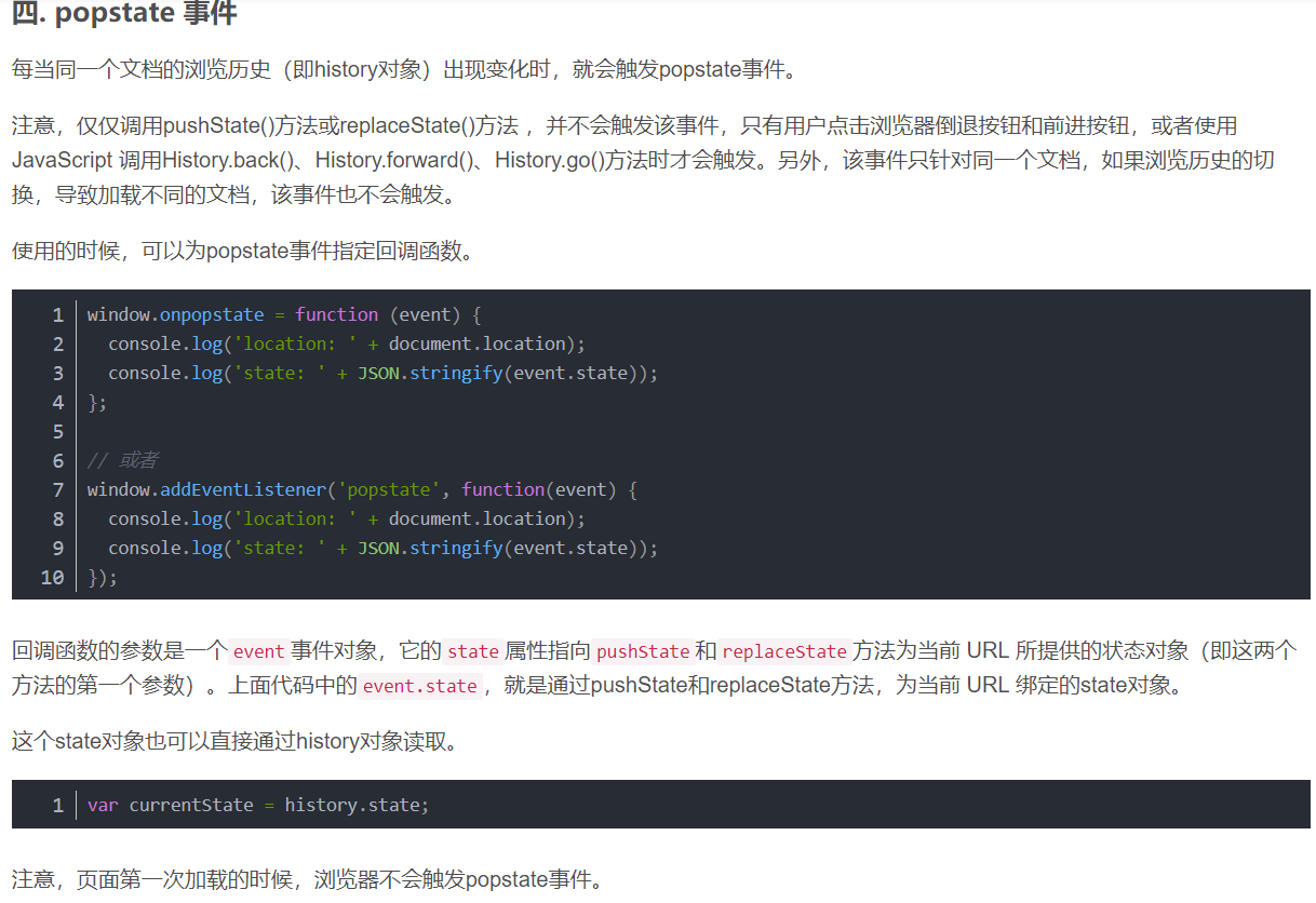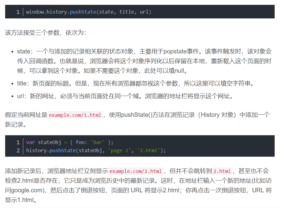 history模式:history采用HTML5的新特性;且提供了两个新方法:pushState(),replaceState()可以对浏览器历史记录栈进行修改,以及popState事件的监听到状态变更。history 模式下,前端的 URL 必须和实际向后端发起请求的 URL 一致,如 http://www.xxx.com/items/id。后端如果缺少对 /items/id 的路由处理,将返回 404 错误。