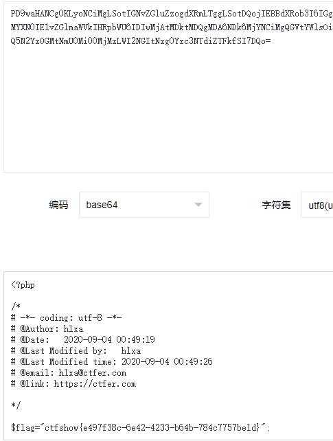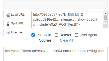 成功,再使用伪协议,test=php://filter/read=convert.base64-encode/resource=flag.php
