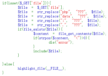 先看前面对file进行一次url解码,这就是绕过前面几个替换的关键。注意游览器本身会进行一次url解码,所以要传入2次url编码的数据,另外注意不少在线url编码只会对特殊符号编码,不会对php这类的字母进行编码