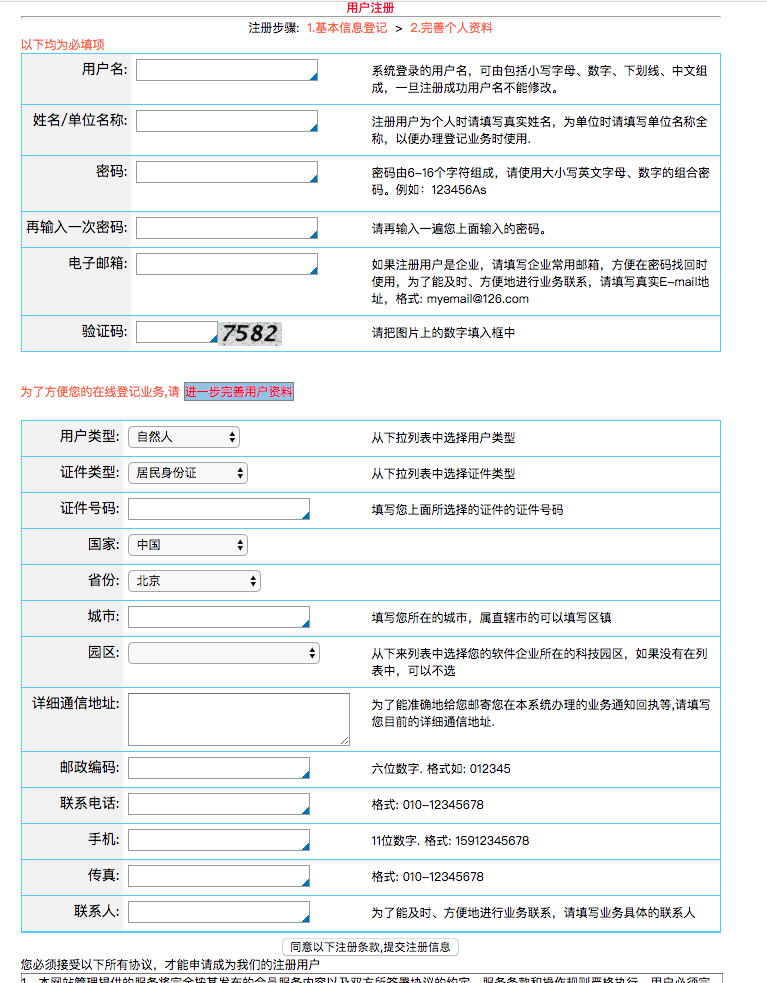 只供软件首次登记填写