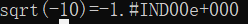 实验A3:表达式sqrt(-10)的值是多少?尝试用各种方式输出。在计算的过程中系统会报错吗?