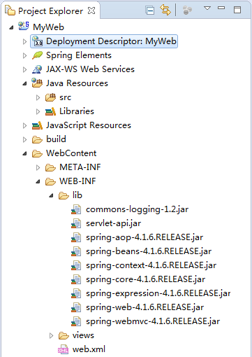 引入SpringMVC 需要的jar包 和 commons-logging包到WEB-INF\lib 目录下
