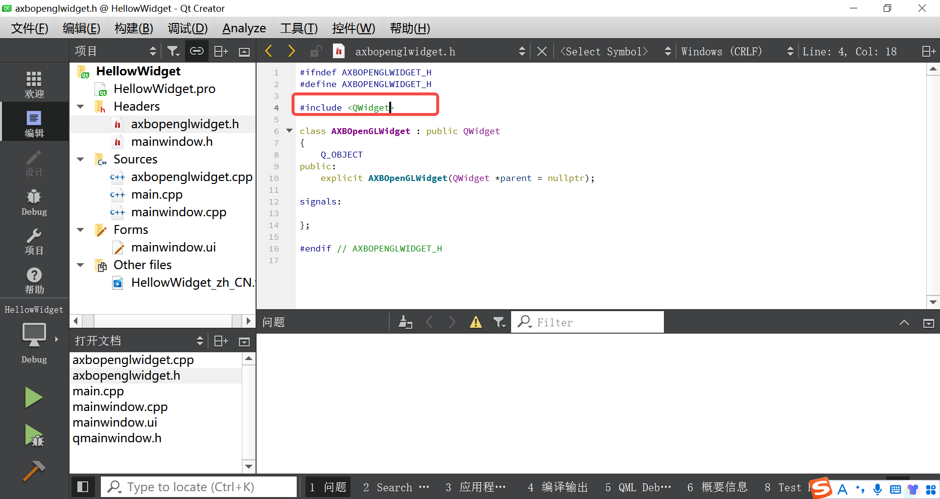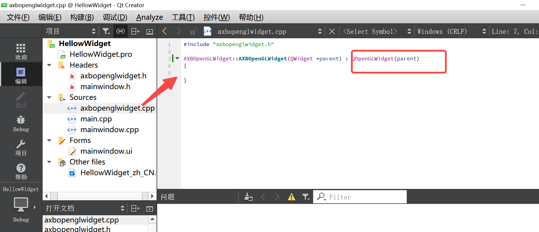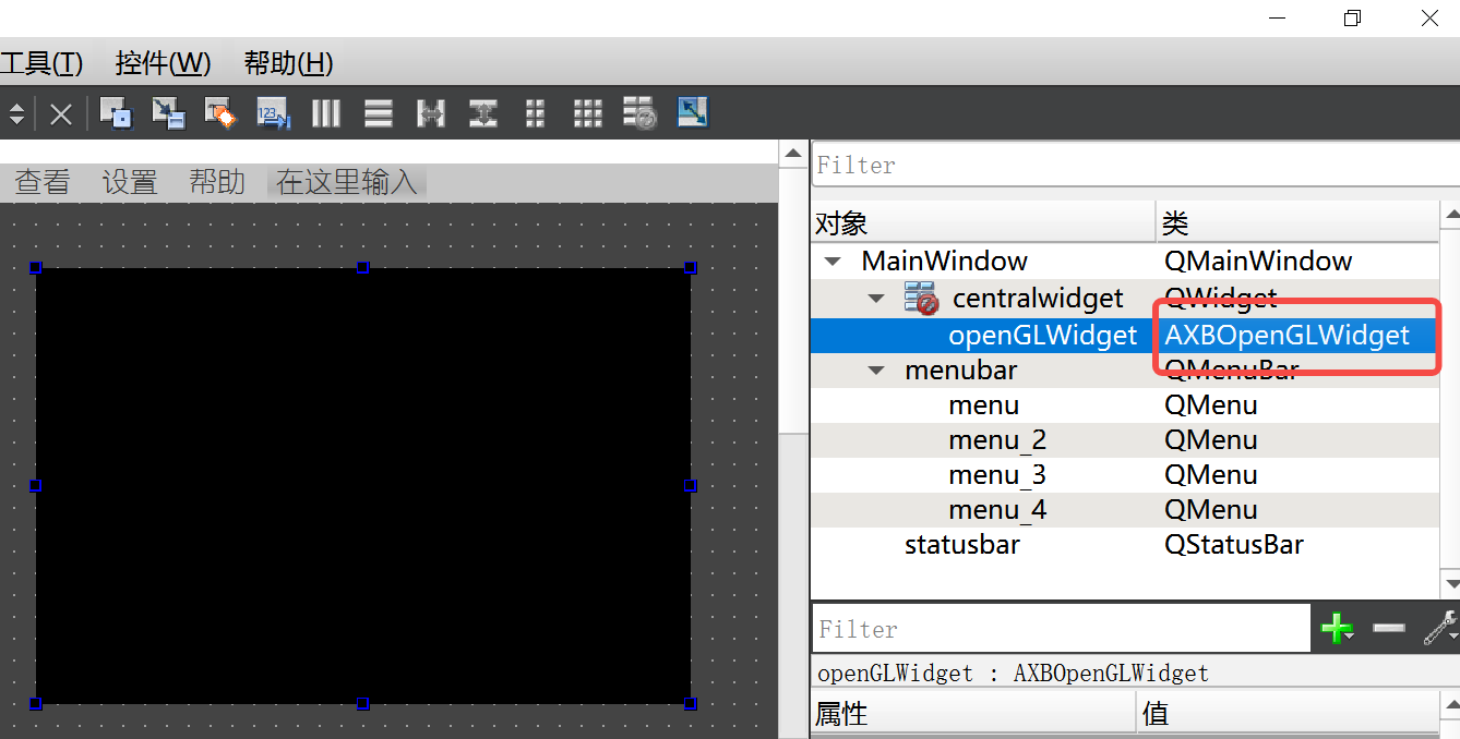 现在基础窗口有了,我们还需要一个控件来展示opengl的数据,即OpenGLWidget(代替GLFW),拖动下面的控件到主窗体上: