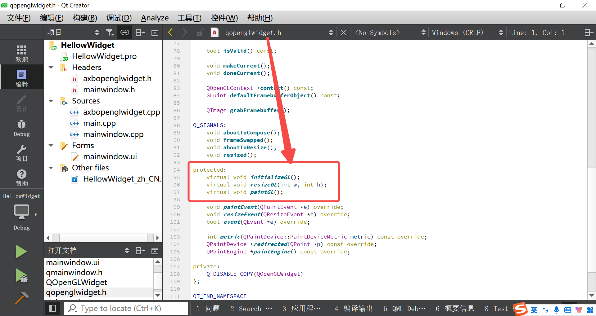 前面我们说过,要在QOpenGLWidget的三个函数中来渲染效果,所以我们已经继承了QOpenGLWidget类,那么我们可以通过这3个方法来实现我们想要的效果: