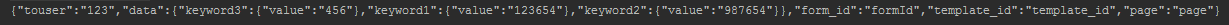 /*这里的模板消息要注意最后一个需要把逗号去掉,前面的需要加上逗号*/