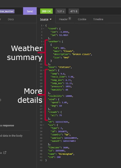 - 查询天气时,JSON返回格式