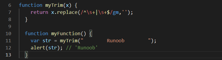 trim() 方法用于删除字符串的头尾空白符,空白符包括:空格、制表符 tab、换行符等其他空白符等。
