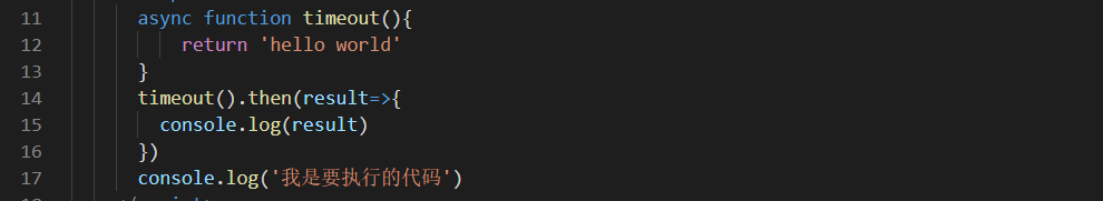 通过控制台打印我们看到,async函数返回的是一个promise对象,如果要获取promise的值,我们可以用.then()方法。